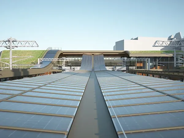 A estação contará com painéis fotovoltaicos, um telhado verde-azulado para gestão da água da chuva e habitats para a vida selvagem, alinhando-se às metas de biodiversidade e de emissões líquidas zero da cidade. O projeto acessível da estação reduzirá o tráfego local em mais de 1.100 veículos diariamente e promoverá opções de transporte sustentáveis, melhorando a qualidade do ar e a qualidade de vida da região.