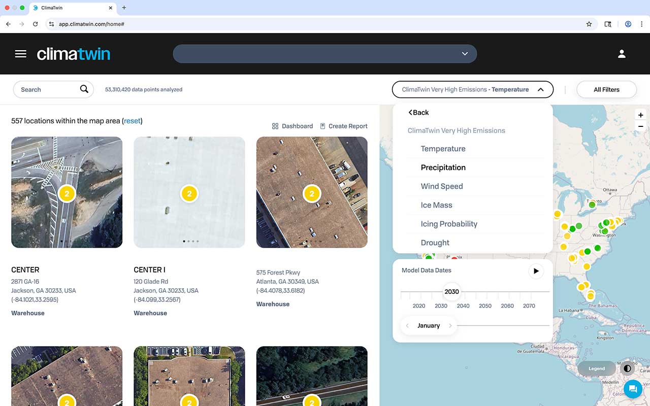 Os ativos de infraestrutura enfrentam os riscos crescentes de futuros eventos climáticos e meteorológicos extremos, como incêndios florestais, inundações, tempestades e ondas de calor. As soluções tradicionais usadas para quantificar os riscos e as oportunidades relacionados ao clima podem ser muito dispendiosas em termos de recursos. A ClimaTwin resolve esse problema usando IA de ponta, tecnologia proprietária e modelagem avançada.